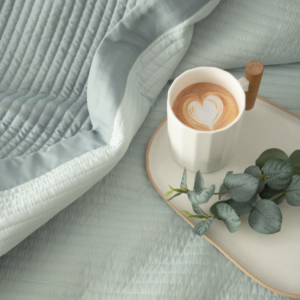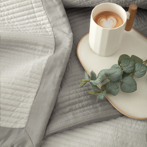 Cover quilt bicolor con sutil mateleseado rayado y marco a tono. EXCELENTE CALIDAD!