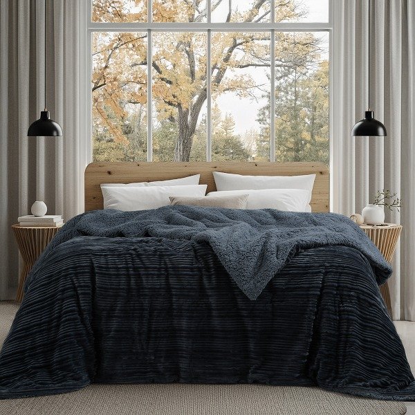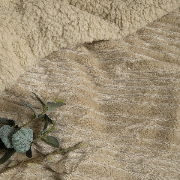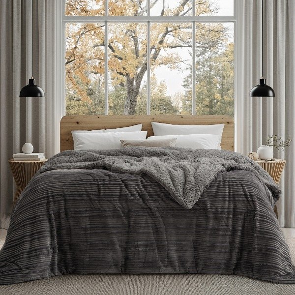 Edredón flannel fleece jacquard matelaseado diseño a rayas y reverso de corderito a tono. ¡SUPER PREMIUM!