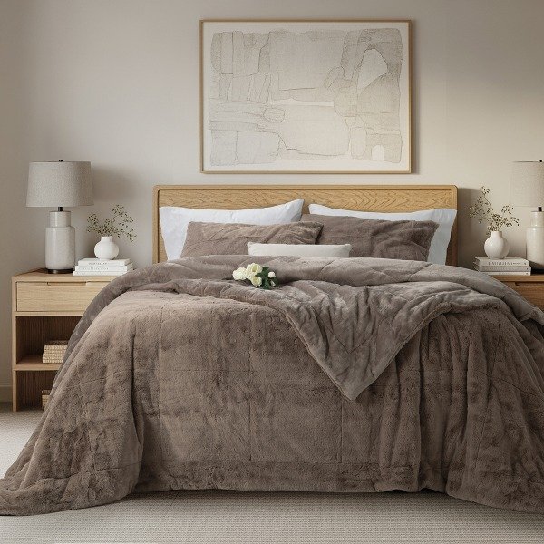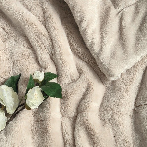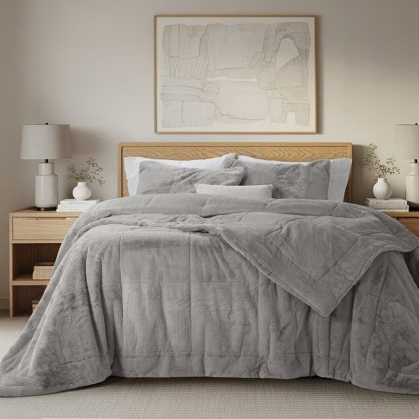 Kit 3 piezas de símil piel de conejo con reverso de flannel fleece compuesto por edredón + 2 fundas de almohadón