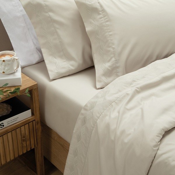 Juegos de sábanas lisas con embozo bordado. Efecto piel de durazno ¡PREMIUM!