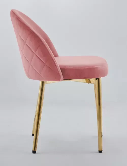 Asiento alcolchado Tapizada en Velvet atorciopelado color GRIS CLARO. Patas metálicas en color dorado, logradas bajo un proceso electrolítico, generando un acabado dorado perfecto. Medidas totales: 47 cm de ancho x 44 cm de profundidad x 76 cm de alto. Medidas del asiento: 47 cm de ancho x 42 cm de profundidad x 48 cm de altura del piso al asiento.